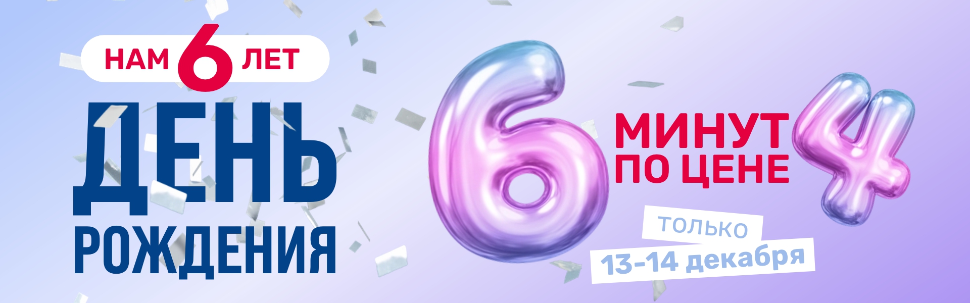 Уже 6 лет мы дарим невероятные эмоции от полетов в нашей аэротрубе! А еще мы очень любим наших гостей, поэтому 13 и 14 декабря подготовили специальную акцию - самый крутой тариф 6 МИНУТ вы сможете приобрести по стоимости 4 МИНУТ!